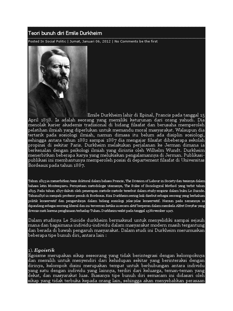 Teori Bunuh Diri Emile Durkheim Pdf
